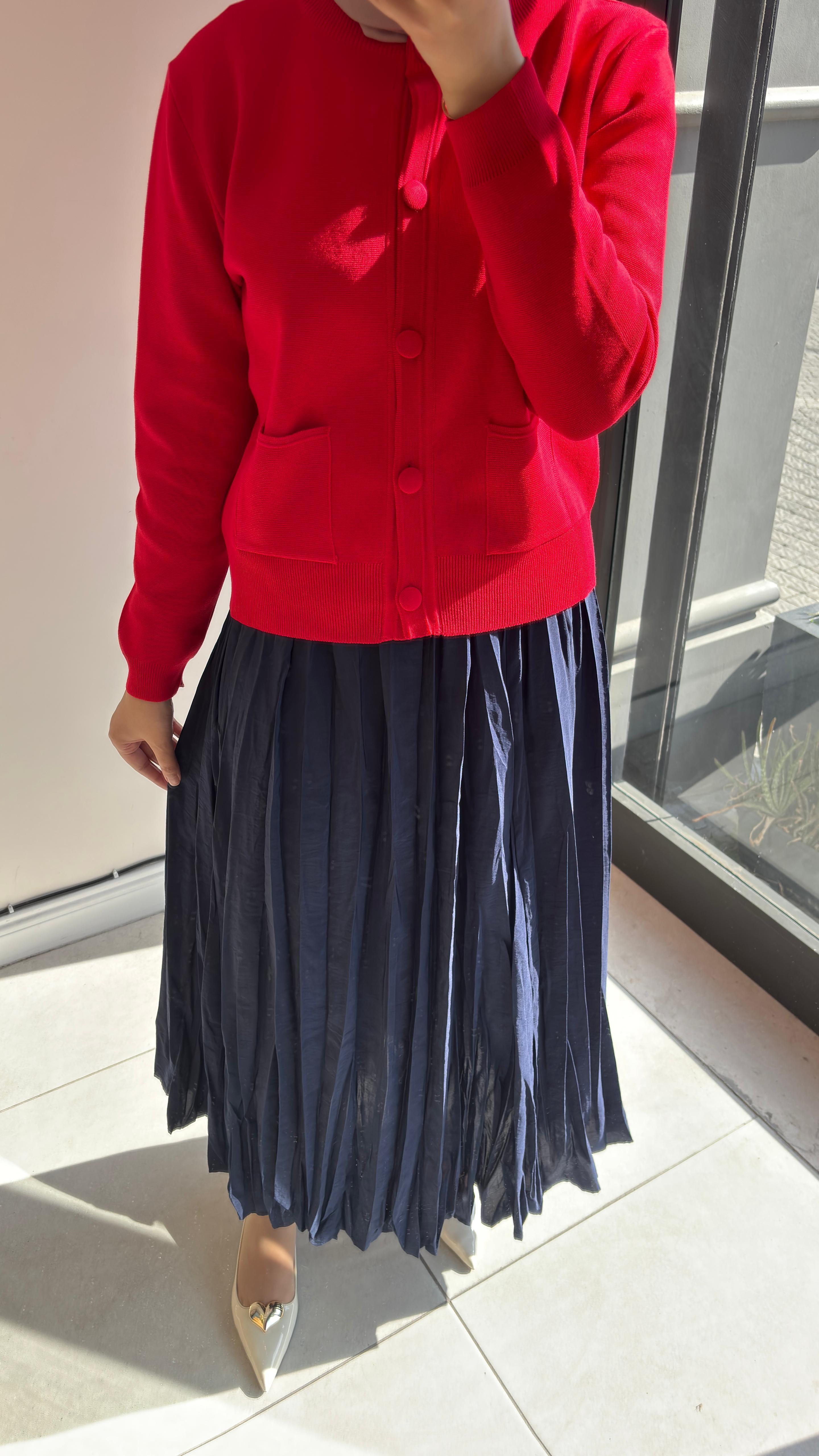 Hafif ve dökümlü yapısıyla Kadın Krinkıl Kumaş Pileli Uzun Etek, modern ve zamansız bir tarz sunuyor. Krinkıl kumaşı, kendiliğinden kırışık dokusuyla ekstra ütü gerektirmez ve her an şık görünüm sağlar. Lastikli beli sayesinde rahat bir kullanım sunarken, pileli tasarımı ile hareketli ve zarif bir duruş yaratır. Günlük kullanımdan özel davetlere kadar her kombinle kolayca uyum sağlar.